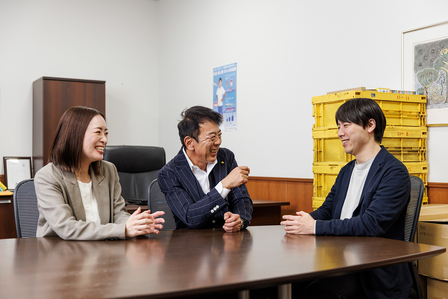 久原:最初に、学用品販売の「封筒」の話をしてくださったのでスムーズにイメージができました。また、萩尾社長の購入者や現場の先生方のことを考える熱い気持ちに胸を打たれ、「負担を軽減するお手伝いがしたい」と思ったのを覚えています。