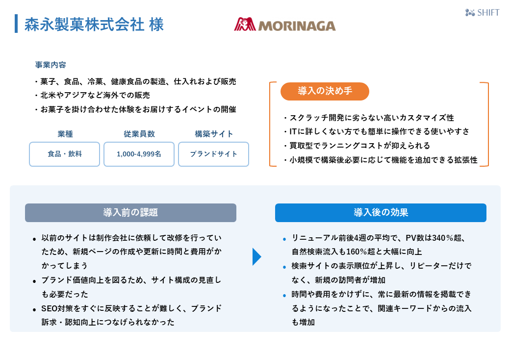 誰もが知る食品・お菓子メーカーである森永製菓様のTAICHIRO MORINAGAサイトリニューアルという大役を任せていただき、大変光栄です。弊社のSITEMANAGEをご選定いただき、心から感謝申し上げます。