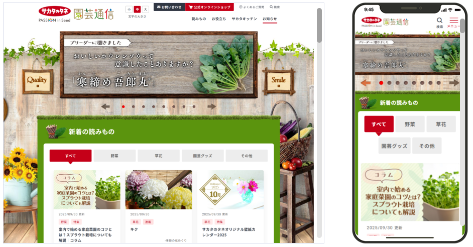 10年以上の歴史をお持ちのサカタのタネ様の園芸通信サイトの大型リニューアルに際し、SITEMANAGEをお選びいただき、誠にありがとうございました。ご提案からメインディレクションまで携わることができ、大変光栄でございます。